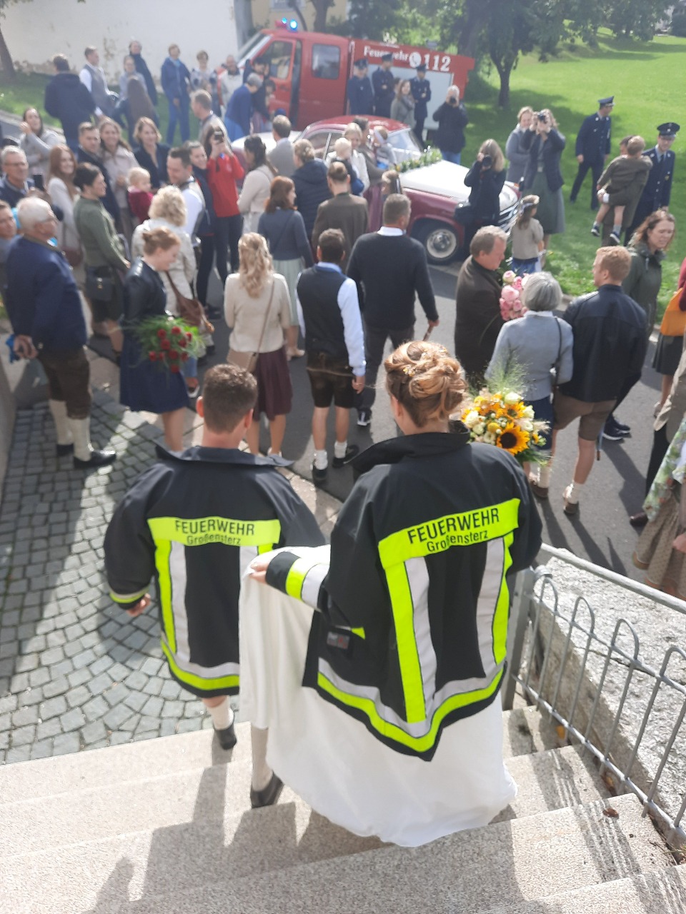 Unser erster Kommandant Andreas Meierhöfer hat heute seine Sandra geheiratet. Gerne gratulierten wir dem Hochzeitspaar mit einem Ehrenspalier vor der Kirche in Leonberg und hatten auch einen Spezialeinsatz für die beiden vorbereitet.