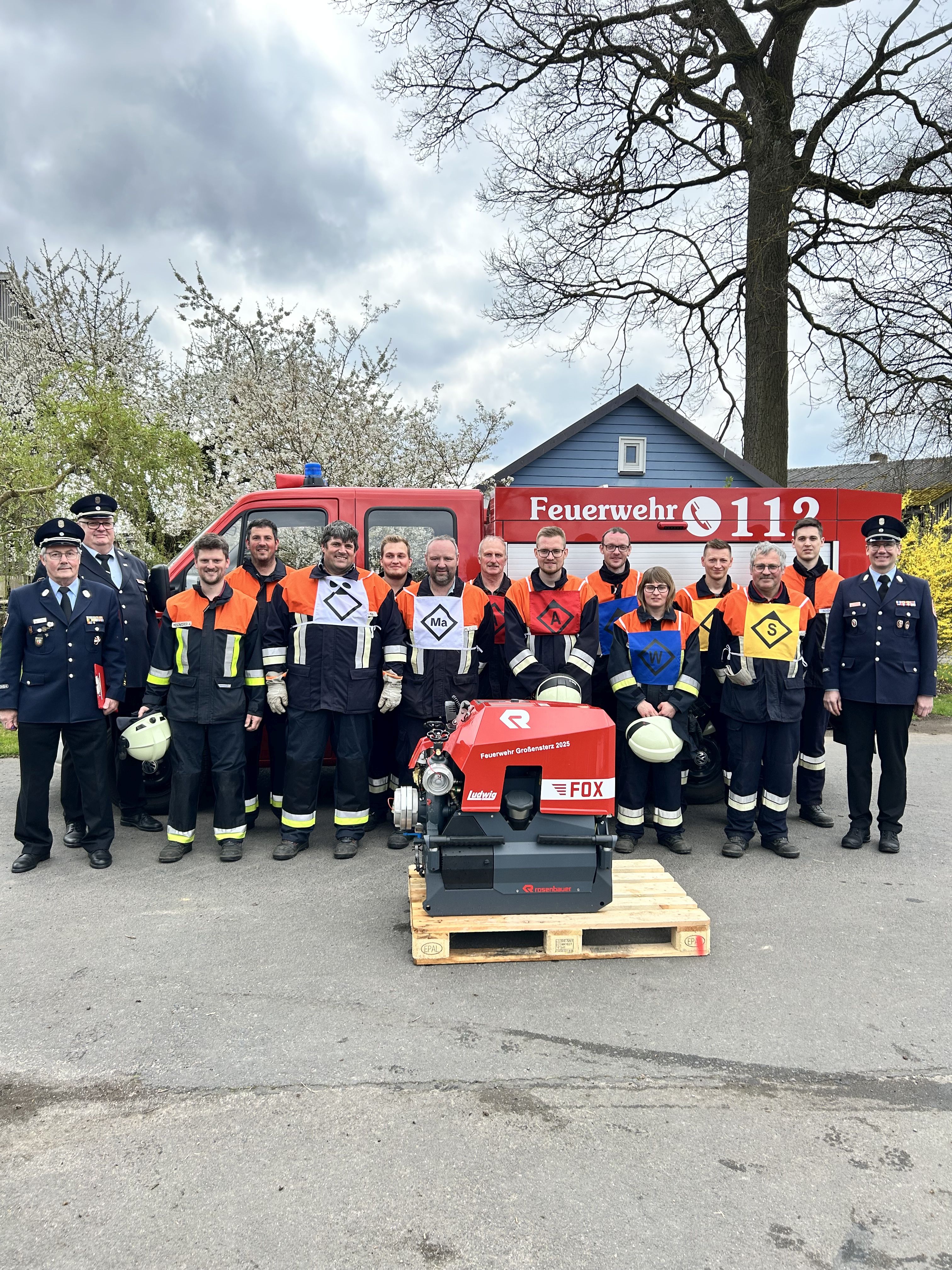Große Freude bereitete den Aktiven auch der Umgang mit der neu angeschafften Pumpe, die bei der Abnahme des Leistungsabzeichens erstmals offiziell zum Einsatz kam. In mehreren Übungen konnten sich die Maschinisten nun bereits mit dem neuen Gerät vertraut machen.